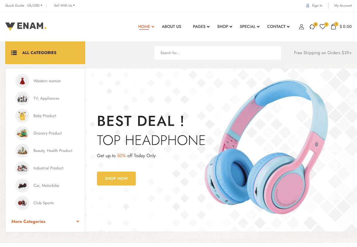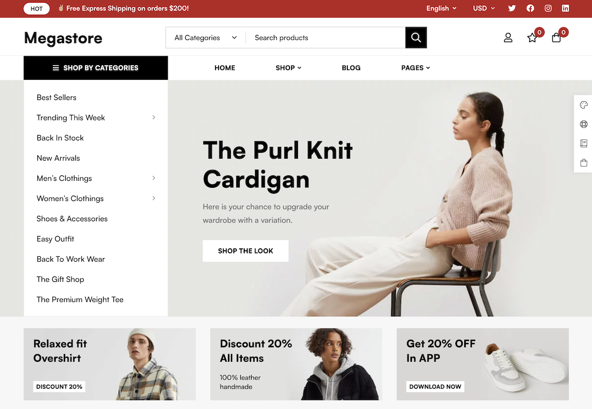 Whether you're aiming for a fashion, electronics, car or a general marketplace, there's a design that fits your vision.