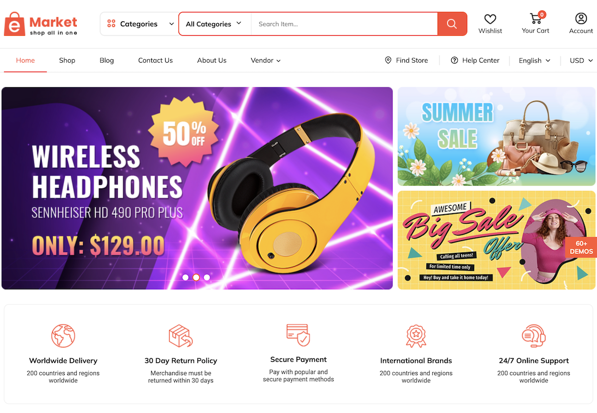 EmallShop is a dynamic WordPress theme perfect for creating your multi-vendor marketplace. Best of all, you can create a niche or a general one without much work.