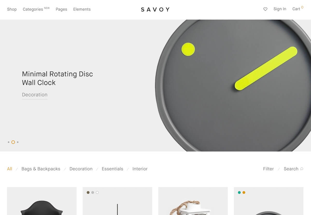 Savoy is the go-to theme if you’re after a minimalist design that puts your products front and center.