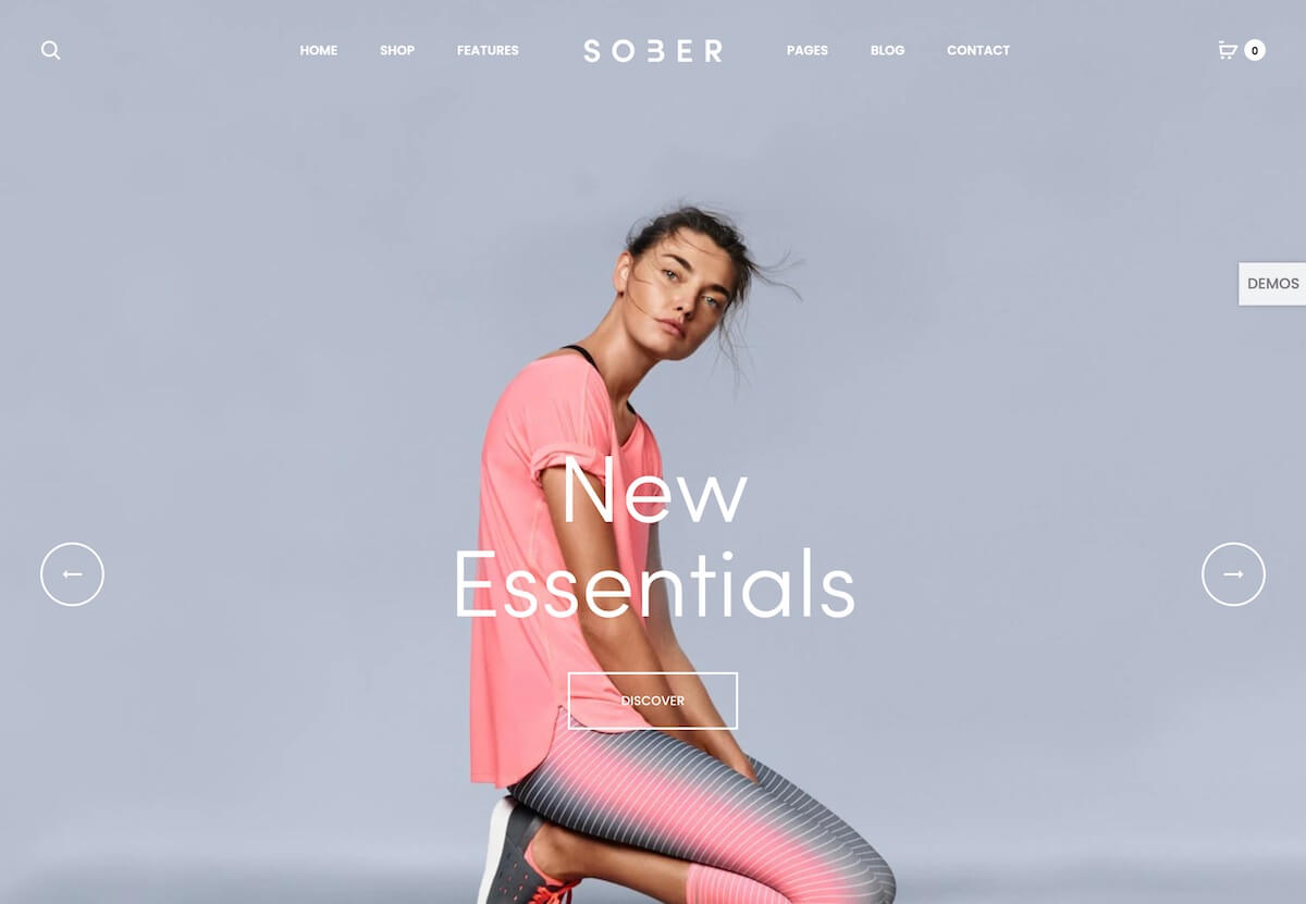 Sober is a top choice with the ready-made front and internal pages, heaps of practical features and elements, and solid store management.