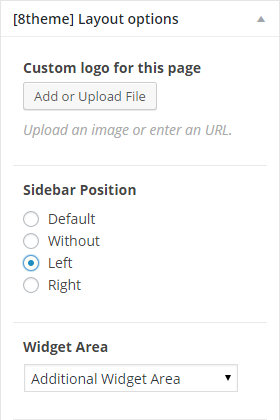 Sidebar Position – Select position of sidebar if you need it different from selected in global 8Theme Options.
