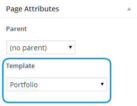 Create Portfolio Page and set the page template (under Page Attributes) to Portfolio. It will be the main page with all your projects.