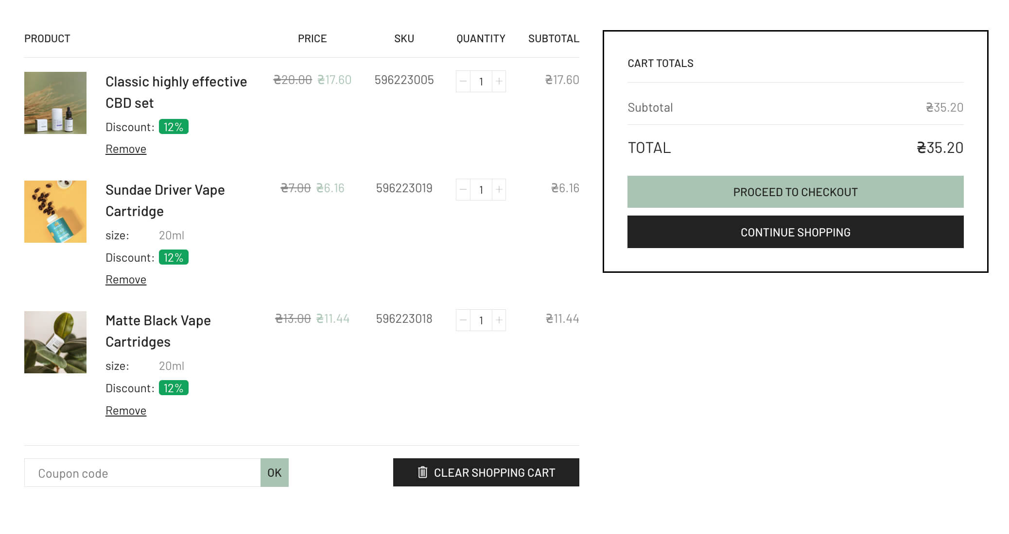 Then when customers add the product combination to their cart, they will see a discount badge applied to those products directly in the cart page: