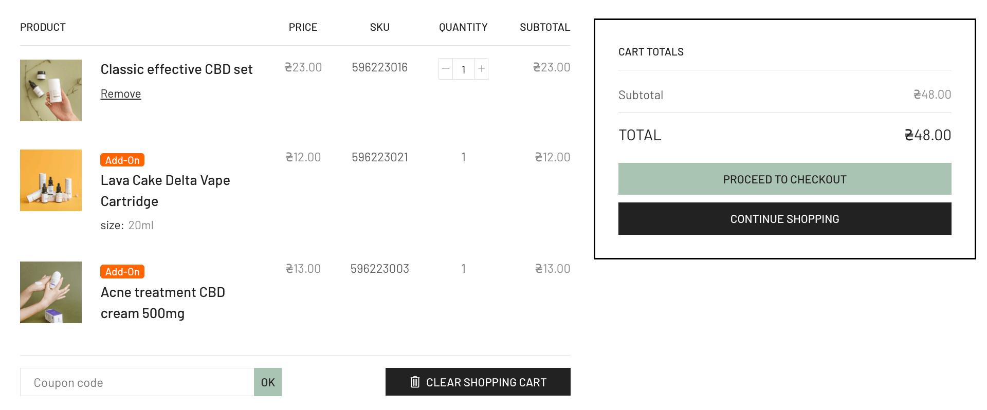 When the combo is added, customers will see a badge or label (e.g., βAdd-onβ) applied to each associated product directly in the cart: