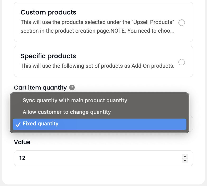 This section controls whether and how discounts are applied to the products displayed in the booster. You can choose from multiple discount types depending on your campaign strategy β whether you’re promoting bundles, upsells, or volume-based savings.
