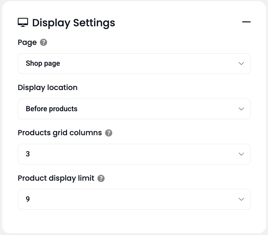 These recommendations are shown in the position you’ve defined under the “Display Settings“, such as on the shop, product page, cart, checkout, or thank you page.