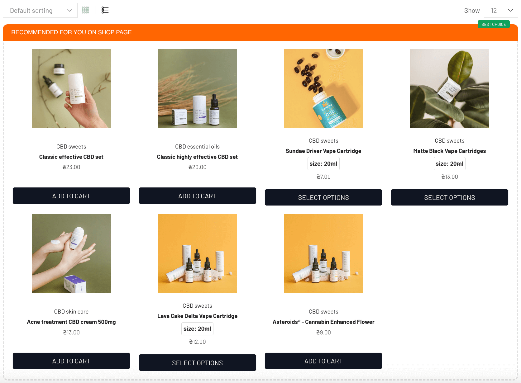 Once configured, the Smart Product Recommendations booster dynamically displays personalized product suggestions based on customer behavior, such as browsing history, best-sellers, or related items.