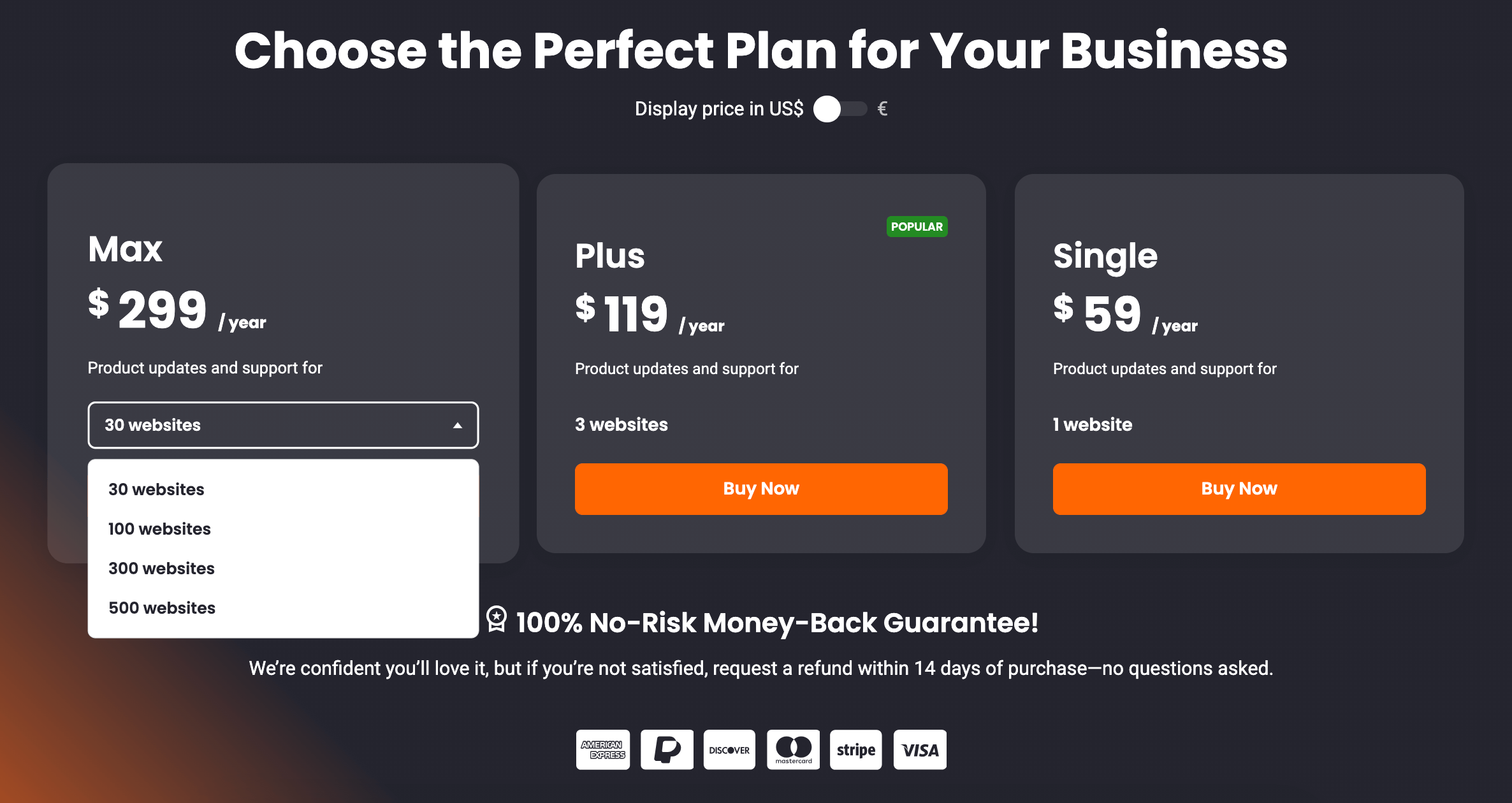 – Max – 30+ websites (with upgrade tiers up to 500)