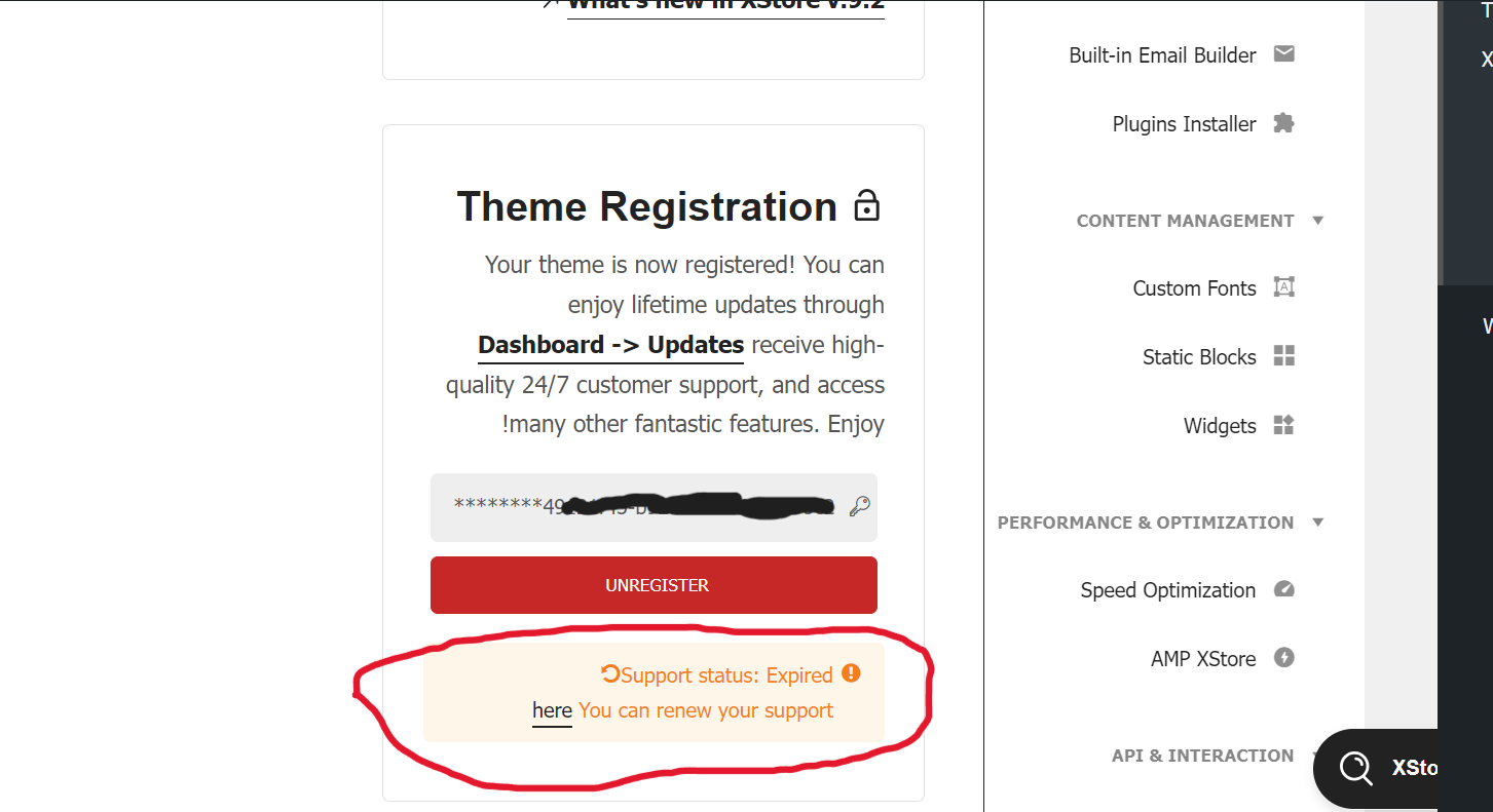 Hi. Moments ago, support was renewed for 1 year. The code has been activated on the 8theme forum, but in the admin control panel. The support has ended logo appears. I am trying to deactivate the old code and add the new code. But it tells me that I should go to the 8theme forum, and I have already been activated on the forum. How can I hide the notification from my admin panel? Thank you…