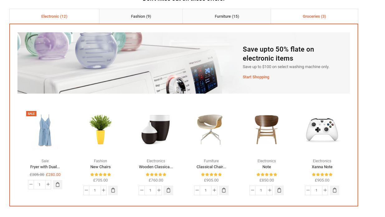 This section contains a few static blocks that are used as content of tabs. Create a few static blocks with the desired content, then edit the Home page using Elementor and add Tabs element and Choose prebuilt static blocks – https://gyazo.com/31ea8773301db0d8b81125163a5a5750 , here are more settings, custom clas and custom CSS was used also