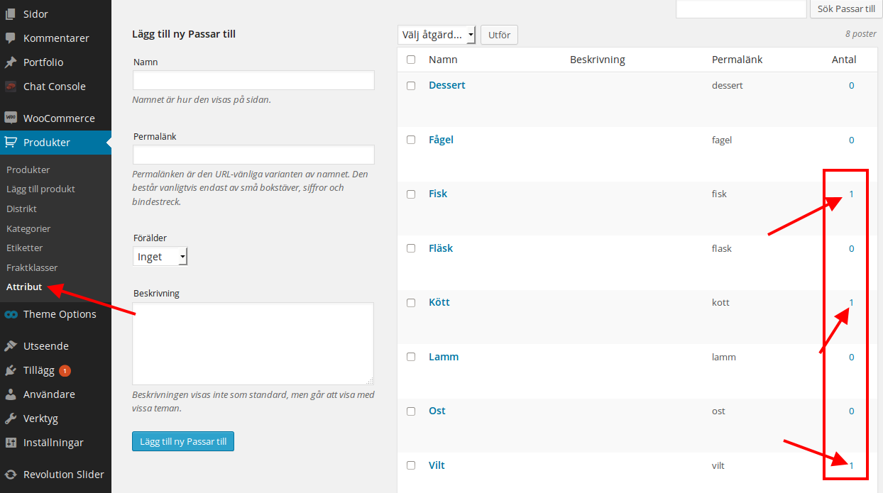 The attributes which I have set up corresponds to the attributes I have added under the products.