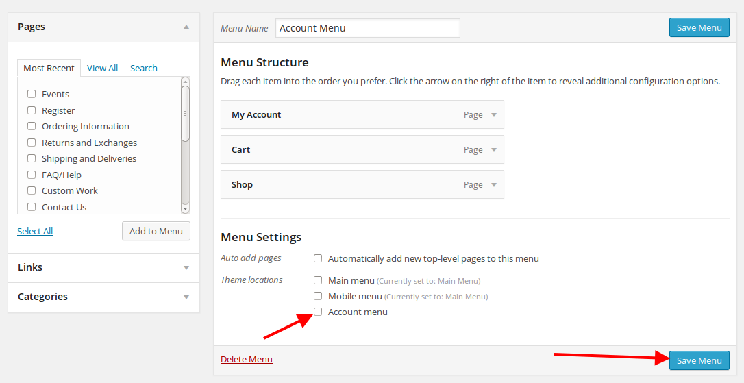 it says: SET YOUR ACCOUNT MENU IN APPERANCE > MENUS