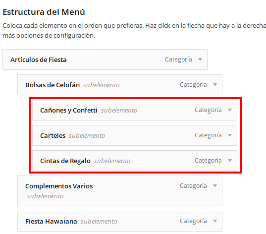 the subitems doesn’t appear properly, as it shows in demo examples. It looks like CSS problems. it shows a different typogrphy and columns are not right,. I putted a class et-col3 on each subitem. Please take a glange of how it looks like clicking Articulos de Fiesta http://www.yaia.es/partygram/