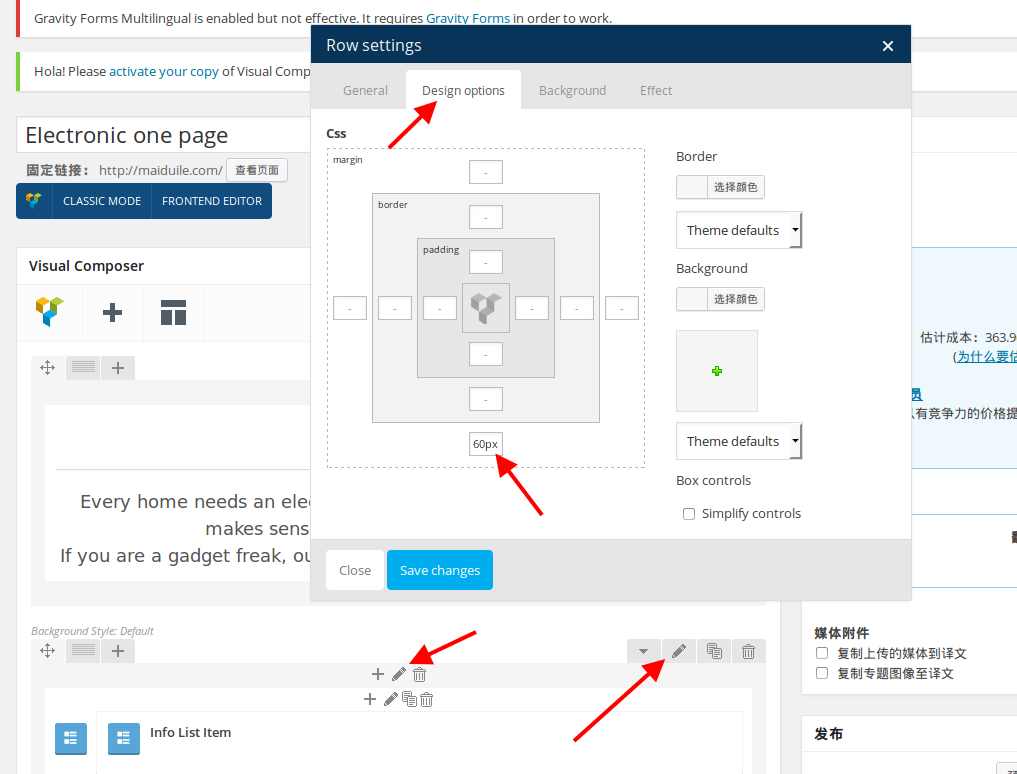 You can check settings of all rows (and columns) in Visual Composer editor and remove values for margin-bottom as shown in the screenshot: