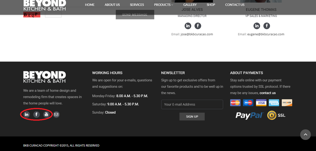The social icons and when I click on them looks good and they work perfect! However the Youtube icon on http://www.bkbcuracao.com is not showing correctly. Can you check this?