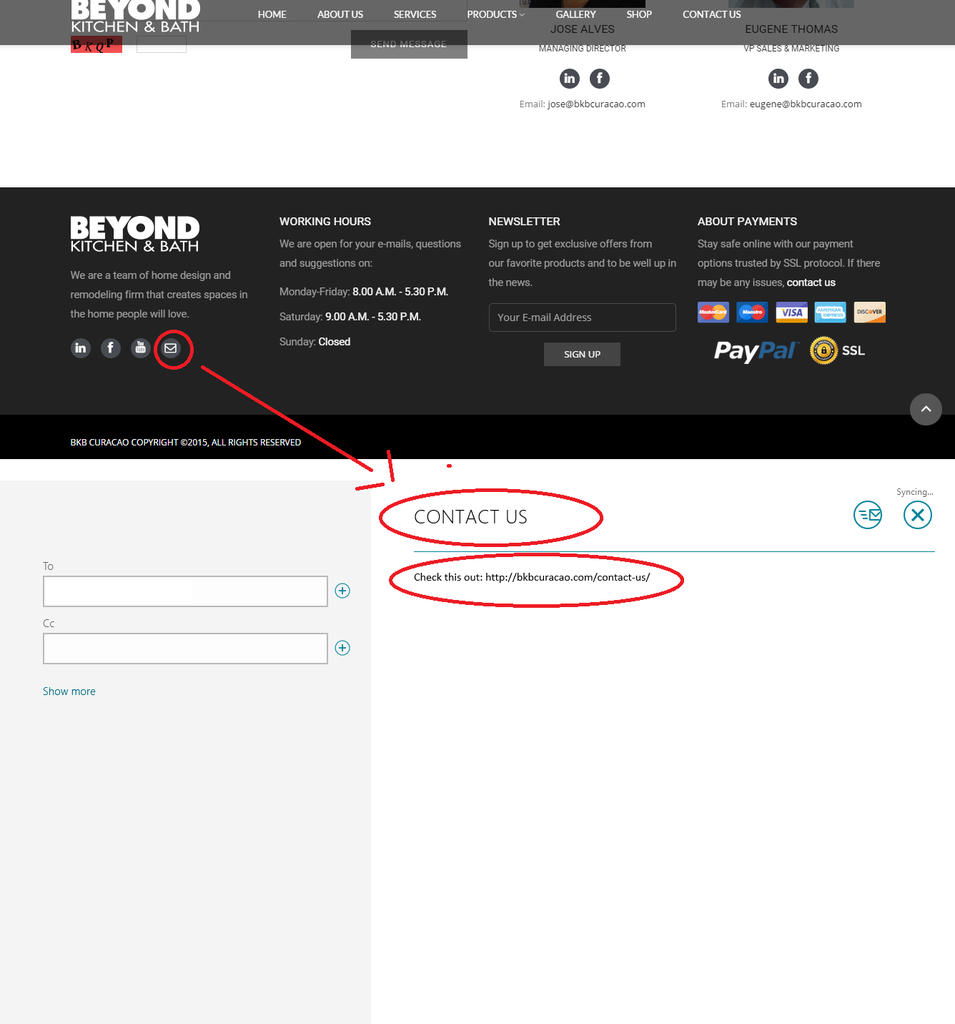E-Mail needs to link to : http://bkbcuracao.com/contact-us/
