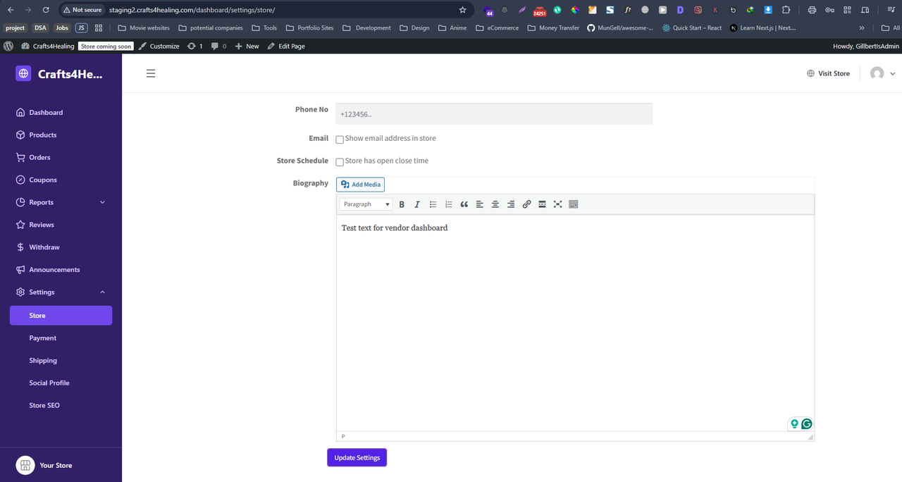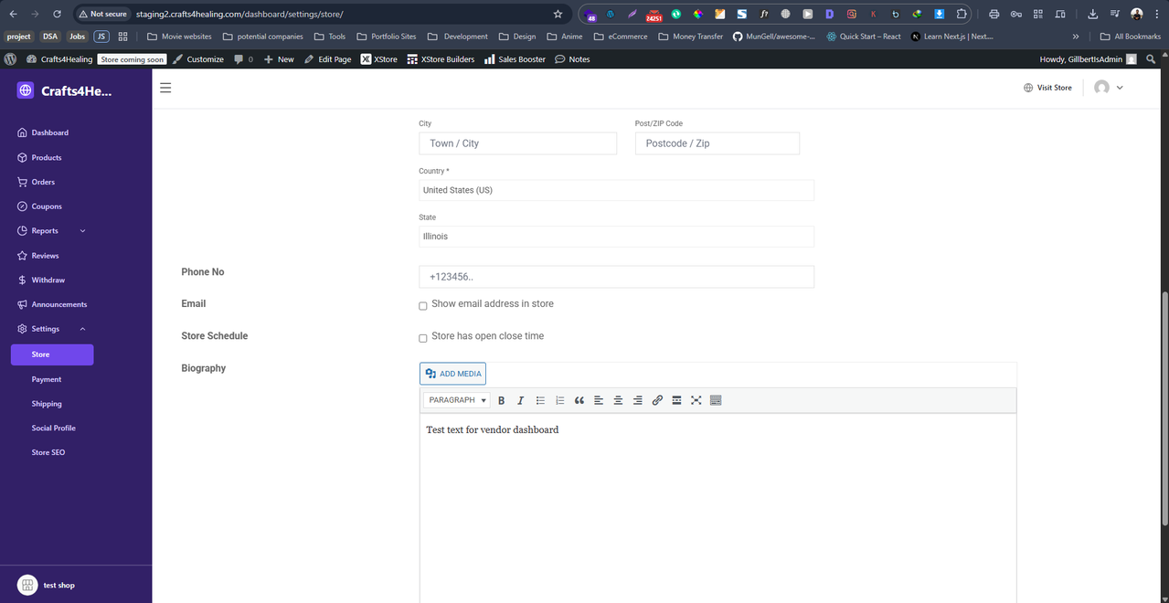 Hi, I just installed the XStore theme on my website, and when I went through the settings when I saw this issue. From the vendor dashboard, if I add a biography as a vendor, it’s showing dummy text. If I remove the dummy text, then the biography section is hidden. To be sure that it’s not happening because of the dokan plugin, I checked it on another website using a different theme. Please see the screenshots below and help me fix this issue.
