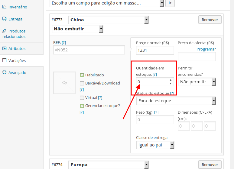 My variable products (I managed to Import via CSV) are not showing the add to cart button. It shows out of stock. I tried everything, but cant find the problem. Example page: http://noivaimportada.com.br/produto/pomposo-vn054/