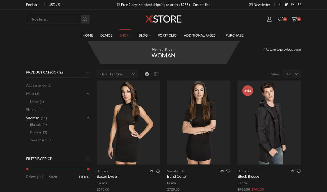 Selling clothes, shoes or accessories is a popular online business. The best eCommerce practices have already been selected and tested. We took advantage of this experience to develop the “Classic Fashion Store (Dark)” WP theme as a ready-made product: