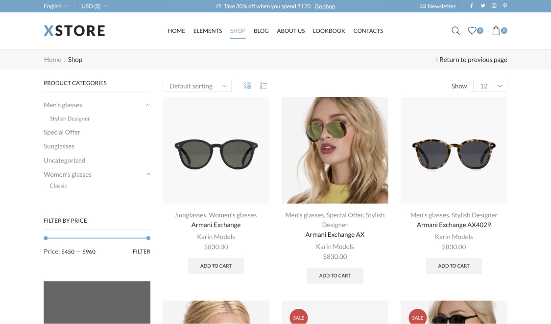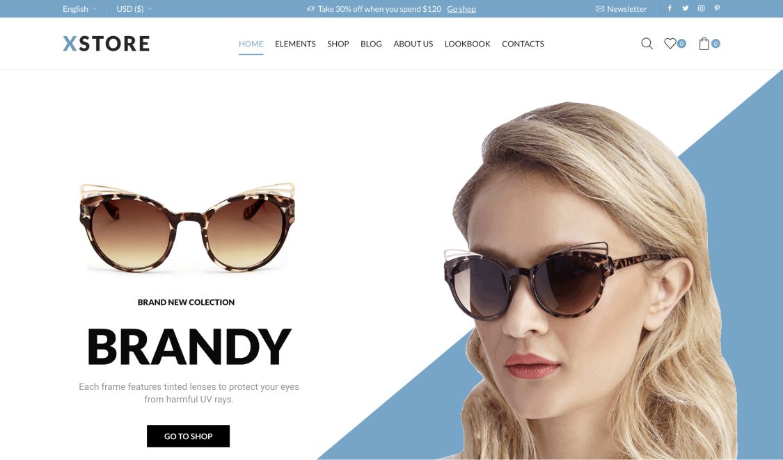 The impressive Glasses Store WooCommerce theme is designed to effectively sell stylish accessories.